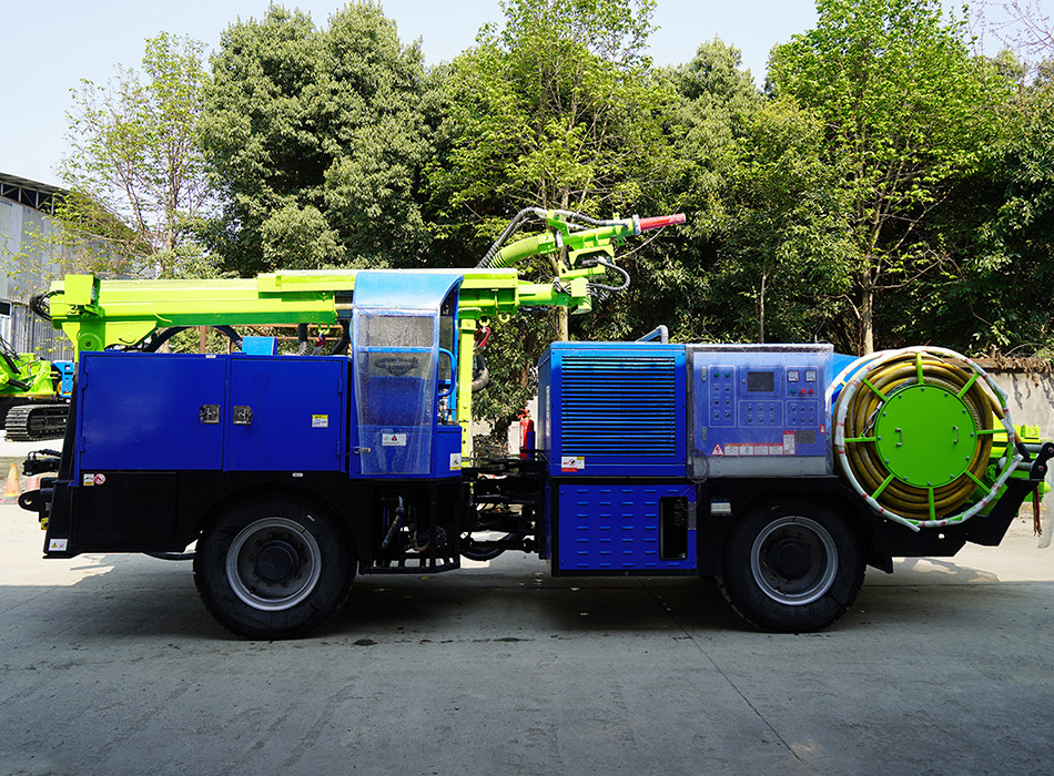 UPS-20J礦用混凝土噴射車是針對礦山及中小斷面地下工程噴漿支護作業研發的專用設備,最大噴射方量可達20m3/h,廣泛適用于礦山、引水洞、斜井等中小型地下工程混凝土噴射支護作業。